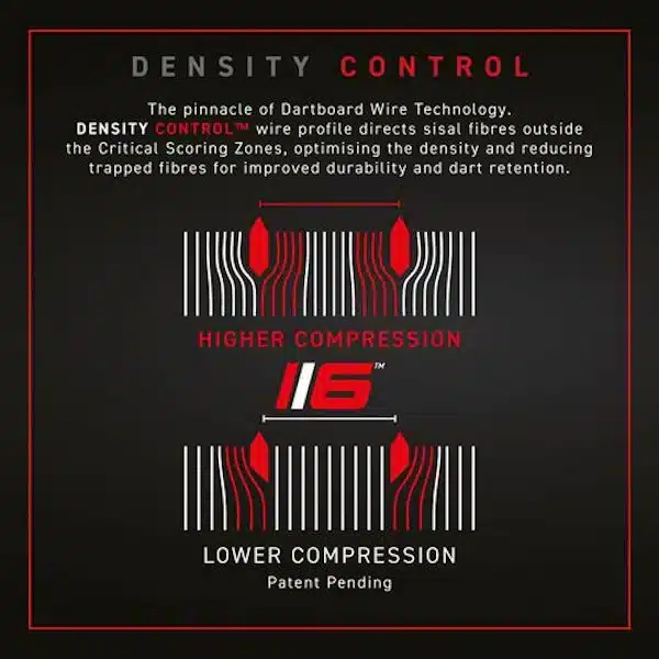 Blade 6 Dual Core’s finely tuned innovations are a statement of performance and quality made for the most aspiring dart player. The patented Dual Core dartboard base offers a seamless, high visibility playing surface and optimized core density designed for maximum scoring. Reduced density at the outer core facilitates smooth dart penetration whilst the high-density inner core absorbs excess kinetic energy, optimizing dart retention and durability.