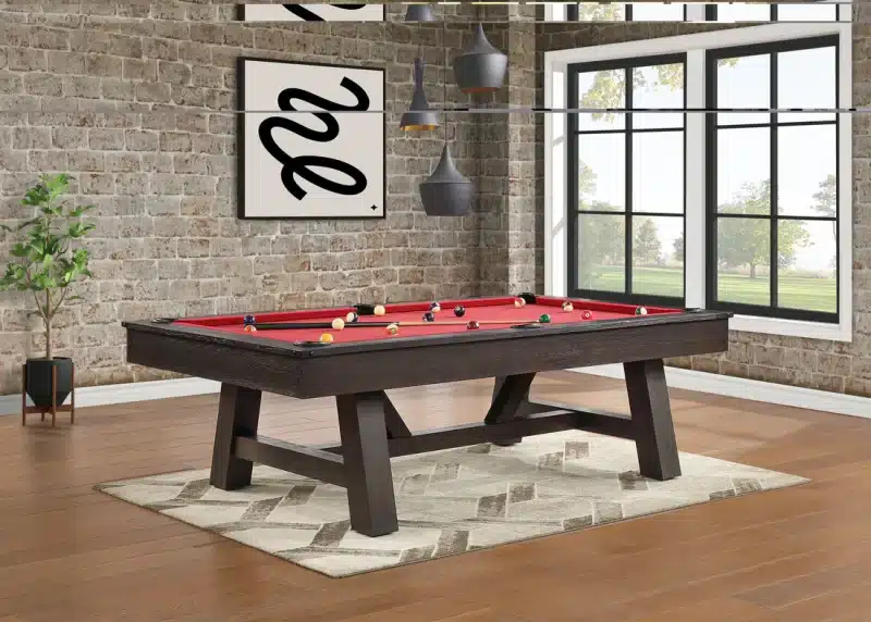 Made from Pine or Ash wood, the Emory pool table is engineered to not only look great but to play like a much higher priced table. The unique leg and stretcher design is sure to make this table the star of your game room.