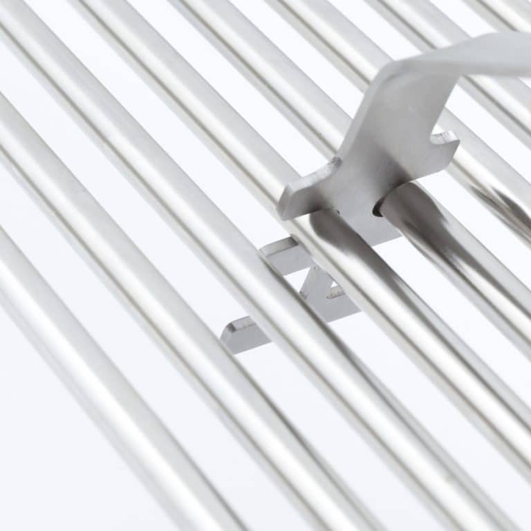 Broil King’s new simplified grid lifter removes both cast and stainless cooking grids in Broil King grills. One set of tines to remove cast and another to remove stainless cooking grids. Stainless with resin handle.